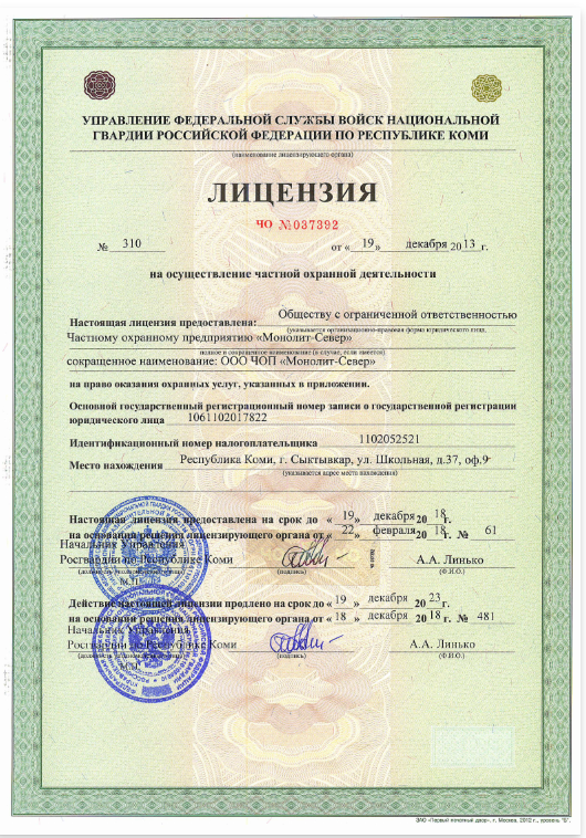 Лицензия ЧО №310,Л056-00106-11/0014038 от 18.12.2018